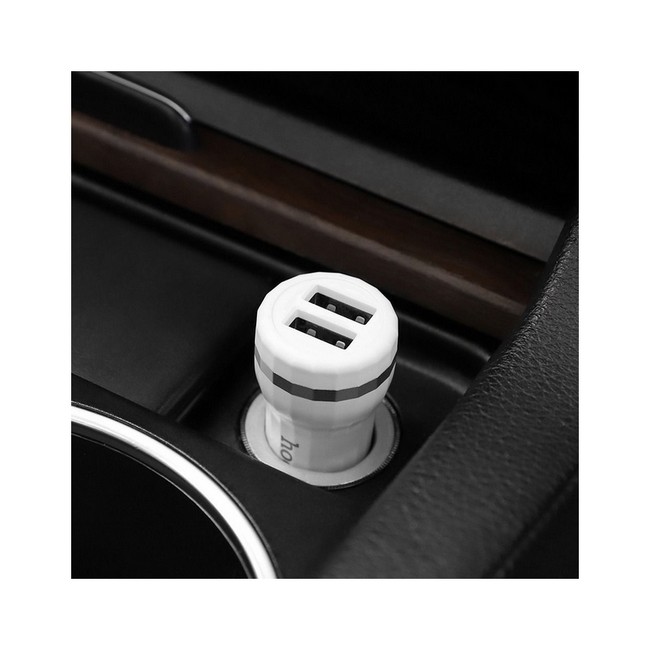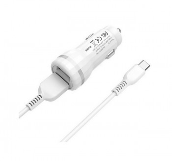 Nabíječka do auta HOCO Z27 vč. datového kabelu USB-C Dual bílá Nabíječka do auta se dvěma USB porty značky HOCO včetně datového kabelu s USB-C konektorem v bílé barvě.