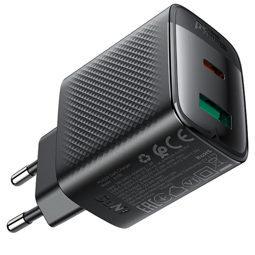 Nabíječka do zdi Acefast A106 GaN rychlé nabíjení Type-C USB 45W 3A černáPředstavujeme nástěnnou nabíječku Acefast A106, která přináší revoluci v rychlosti a efektivitě nabíjení. Díky pokročilé technologii GaN (nitrid gallia) je tato nabíječka nejen výkonná, ale také neuvěřitelně kompaktní, což z ní činí ideálního společníka na cesty i pro každodenní použití. Zapomeňte na pomalé nabíjení a užijte si plnou kapacitu svých zařízení v rekordním čase.