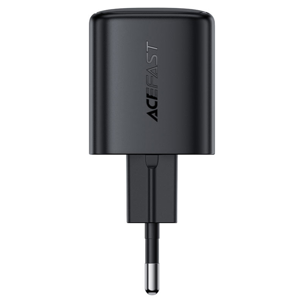 Nabíječka Acefast A119 se pyšní elegantním a minimalistickým designem v matně černé barvě. Její kompaktní a zaoblené tělo s jemně texturovaným povrchem skvěle padne do ruky a působí velmi prémiově. Na jedné straně je decentně vyraženo logo značky Acefast, které podtrhuje její moderní estetiku. V horní části nabíječky naleznete jeden USB-C port, který je pro lepší orientaci zvýrazněn oranžovým vnitřním akcentem, což dodává celkovému vzhledu šmrnc a funkčnost. Standardní evropské zástrčky zajišťují širokou kompatibilitu s elektrickými sítěmi.