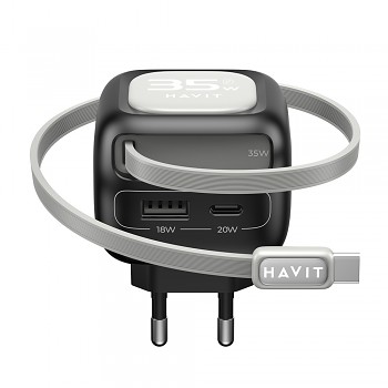 Nabíječka Havit UC251 EU s výsuvným kabelem Type-C USB GaN 35W černá šedáPředstavujeme vám inovativní nabíječku Havit UC251 EU, která kombinuje vysoký výkon, kompaktní design a maximální praktičnost pro každodenní použití. Díky pokročilé technologii GaN a inteligentnímu rozložení výkonu je ideálním společníkem pro rychlé a bezpečné nabíjení vašich zařízení.