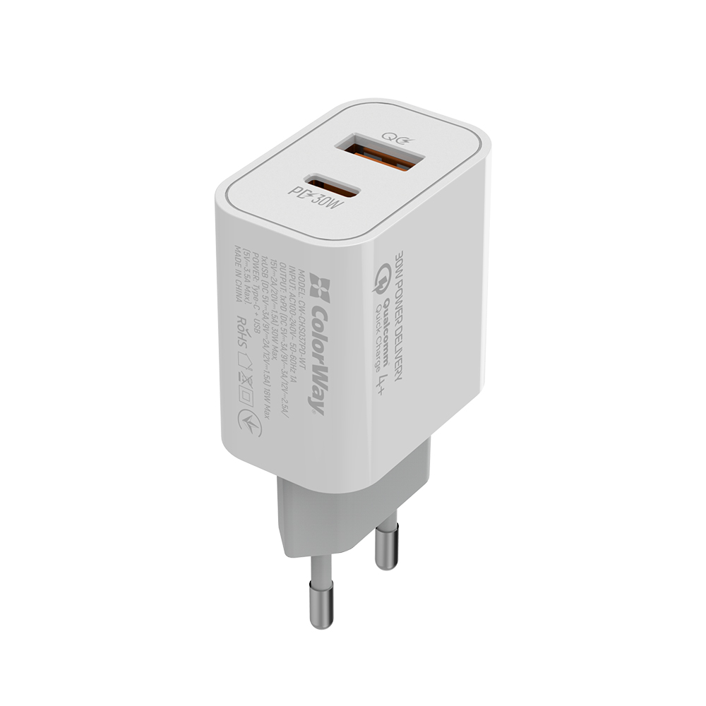 Nabíječka ColorWay CW-CHS037PD-WT se pyšní řadou funkcí, které z ní dělají nepostradatelného pomocníka v každé domácnosti či kanceláři. S celkovým výkonem 30W poskytuje dostatek energie pro rychlé nabíjení. Je vybavena dvěma výstupními porty: USB-C s Power Delivery (PD) a USB-A s Quick Charge (QC), což umožňuje nabíjet dvě zařízení současně s optimální rychlostí. Její bílé provedení se hodí do každého interiéru a díky kompaktním rozměrům ji snadno sbalíte na cesty.