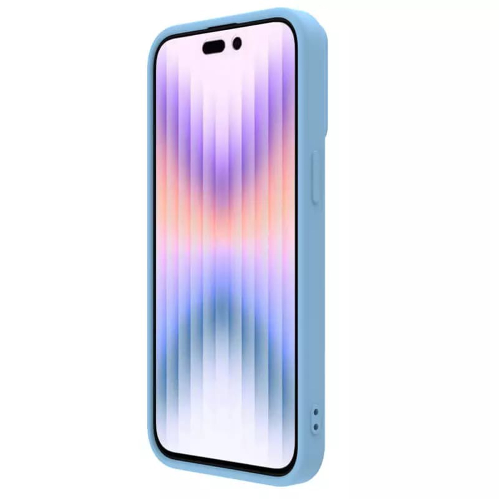 Pouzdro Nillkin CamShield Silky MagSafe Silicone v odstínu Haze Blue se vyznačuje elegantním a minimalistickým designem. Jeho povrch je vyroben z prémiového silikonu, který je hedvábně jemný na dotek a zároveň poskytuje protiskluzové vlastnosti pro bezpečné držení telefonu. Dominantním prvkem je integrovaný posuvný kryt fotoaparátu, který je dokonale sladěn s celkovým vzhledem pouzdra a zajišťuje maximální ochranu citlivých objektivů. Kryt je precizně navržen tak, aby dokonale obepínal křivky vašeho iPhone 15 Pro Max, a to včetně zvýšených okrajů pro dodatečnou ochranu displeje a fotoaparátu.