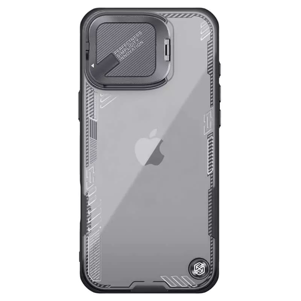 Pouzdro Nillkin Iceblade Prop se pyšní sofistikovaným designem, který klade důraz na funkčnost a estetiku. Zadní strana je vyrobena z průhledného, lehce kouřového materiálu, který nechává vyniknout originální design vašeho iPhone 16 Pro, zatímco robustní černé okraje a zesílené rohy zajišťují maximální ochranu proti pádům a nárazům.