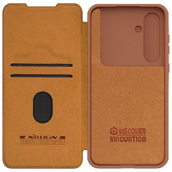 Nillkin Qin Pro Leather kryt Samsung Galaxy S24 FE hnědýDopřejte svému telefonu Samsung Galaxy S24 FE prvotřídní ochranu a elegantní vzhled s flipovým pouzdrem Nillkin Qin Pro Leather v hnědé barvě. Tento kryt kombinuje sofistikovaný design s praktickými funkcemi, které ocení každý uživatel.