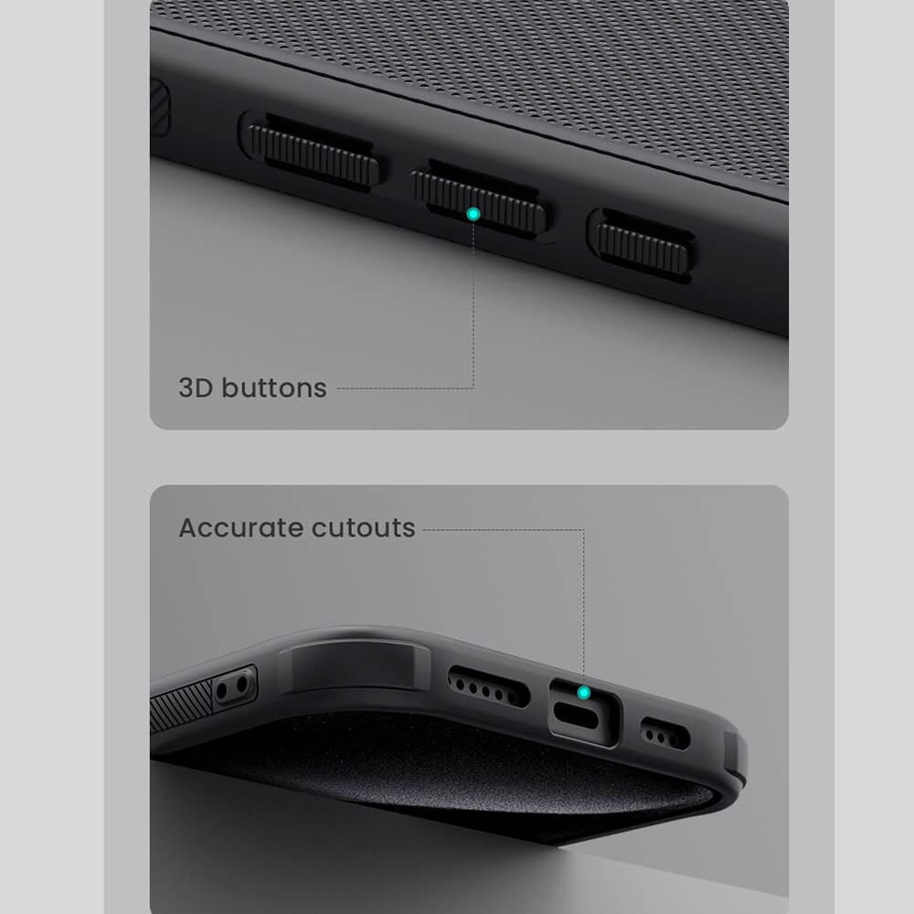 Kryt se pyšní precizním zpracováním a minimalistickým designem. Jeho zadní strana je opatřena charakteristickou protiskluzovou texturou, která nejen skvěle vypadá, ale také zajišťuje pevný a jistý úchop, čímž minimalizuje riziko vyklouznutí telefonu z ruky. Díky této textuře je kryt odolný proti otiskům prstů a snadno se udržuje. Okraje krytu jsou mírně zvýšené, aby chránily displej i objektivy fotoaparátu před poškrábáním při položení na rovnou plochu. Všechny výřezy pro porty, reproduktory a tlačítka jsou přesné na milimetr, což zaručuje bezproblémové používání všech funkcí telefonu. Tlačítka jsou navíc 3D, což zajišťuje příjemnou odezvu a snadné ovládání.