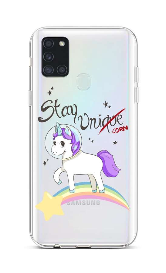 Zadní silikonový kryt na mobil Samsung A21s Stay UnicornSilikonové obaly patří mezi nejoblíbenější ochranné kryty pro mobilní telefony. Originální motiv zajistí mobilu stylový vzhled a díky kvalitnímu zpracování také skvělou ochranu.