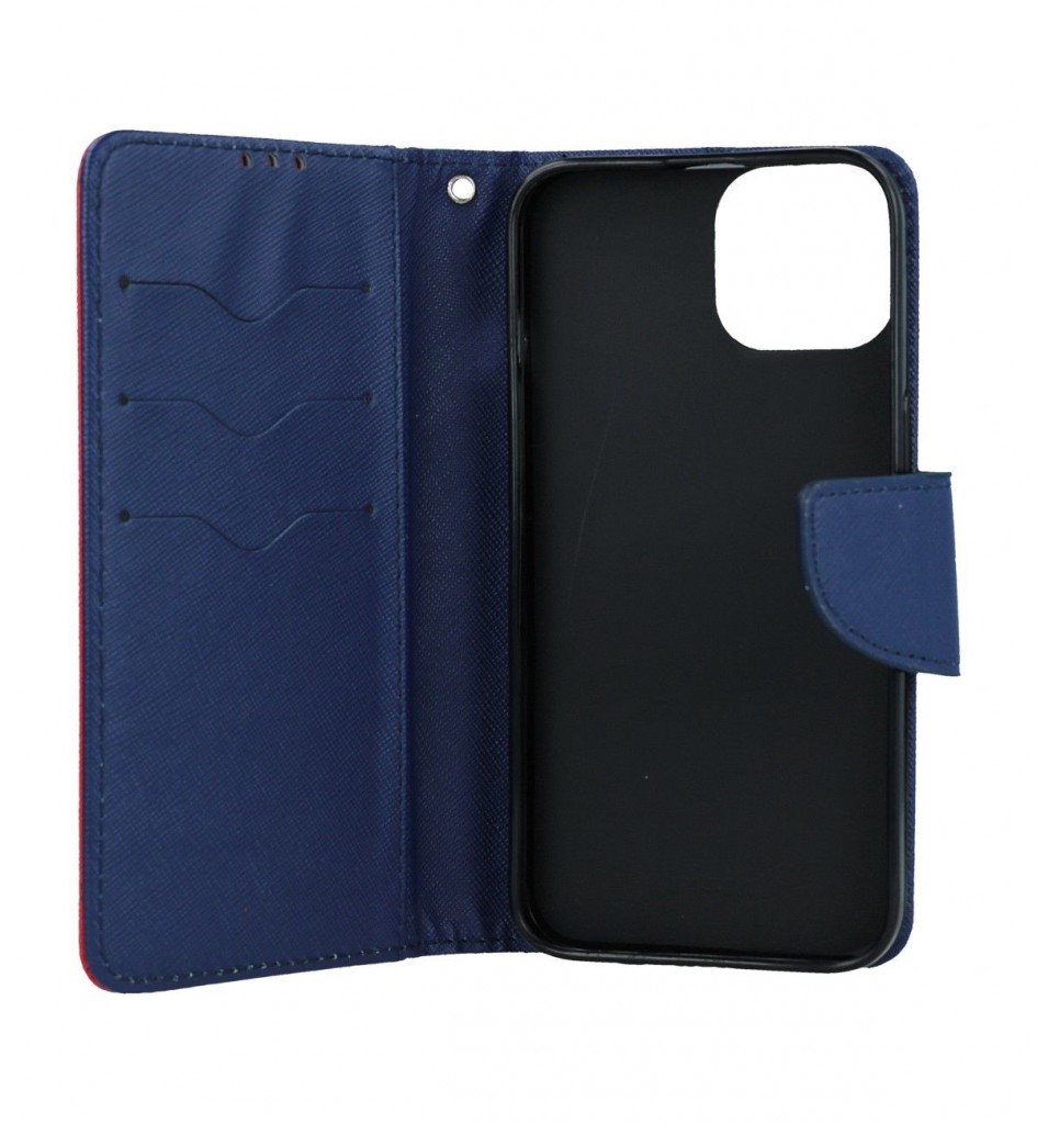 Knížkové pouzdro TopQ na mobil iPhone 15 červenéToto pouzdro je vyrobeno z textilního materiálu a připomíná svým vzhledem vazbu diáře.