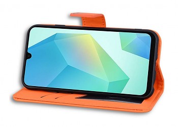 Knížkové pouzdro TopQ na mobil Samsung A16 oranžové s žabkouKvalitní knížkové pouzdro na mobil Samsung A16 oranžové s žabkou.