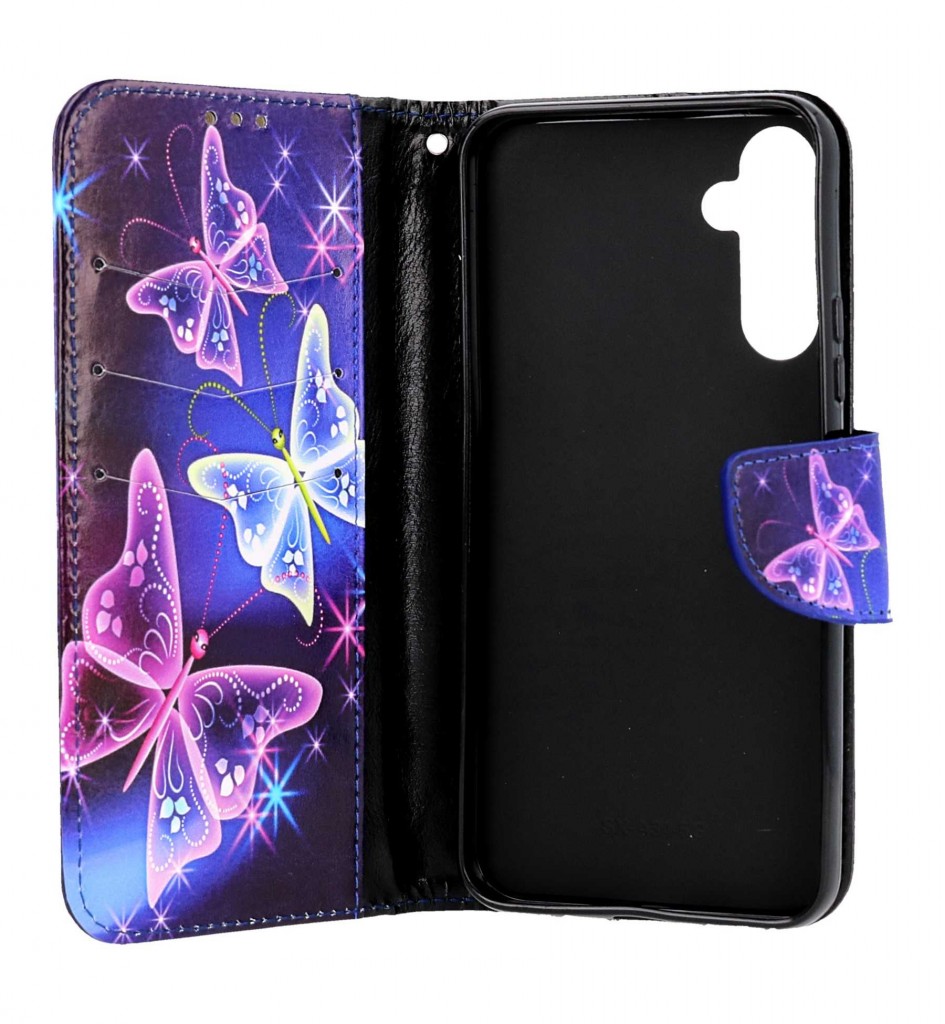 Knížkové pouzdro TopQ na mobil Samsung A34 Modré s motýlkyKvalitní knížkové pouzdro na mobil Samsung A34 Modré s motýlky.