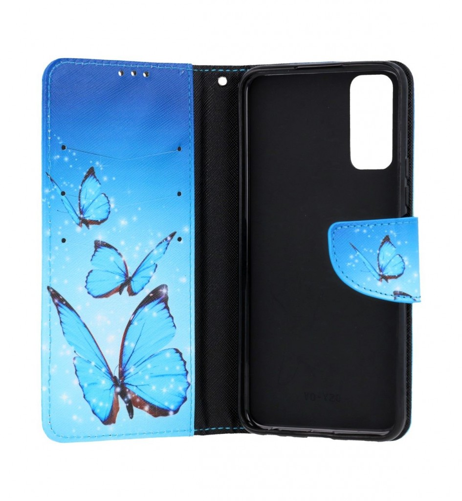 Knížkové pouzdro TopQ na mobil Vivo Y20s Modří motýlciOriginální vzor dělá z tohoto knížkového pouzdra módní doplněk pro Váš mobilní telefon a zároveň mu poskytuje dokonalou ochranu před poškozením.