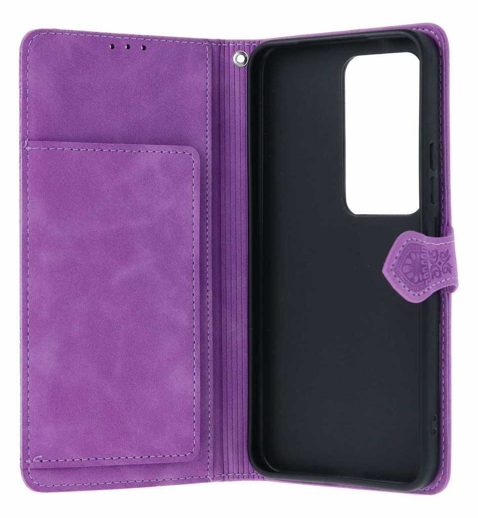 Telefon drží ve vnitřním pružném držáku. Vedle tohoto držáku naleznete také sedm praktických přihrádek na bankovky či platební kartu.