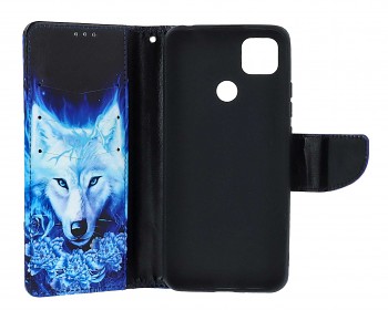 Knížkové pouzdro na mobil Xiaomi Redmi 9C Tyrkysový vlk Originální vzor dělá z tohoto knížkového pouzdra módní doplněk pro Váš mobilní telefon a zároveň mu poskytuje dokonalou ochranu před poškozením.