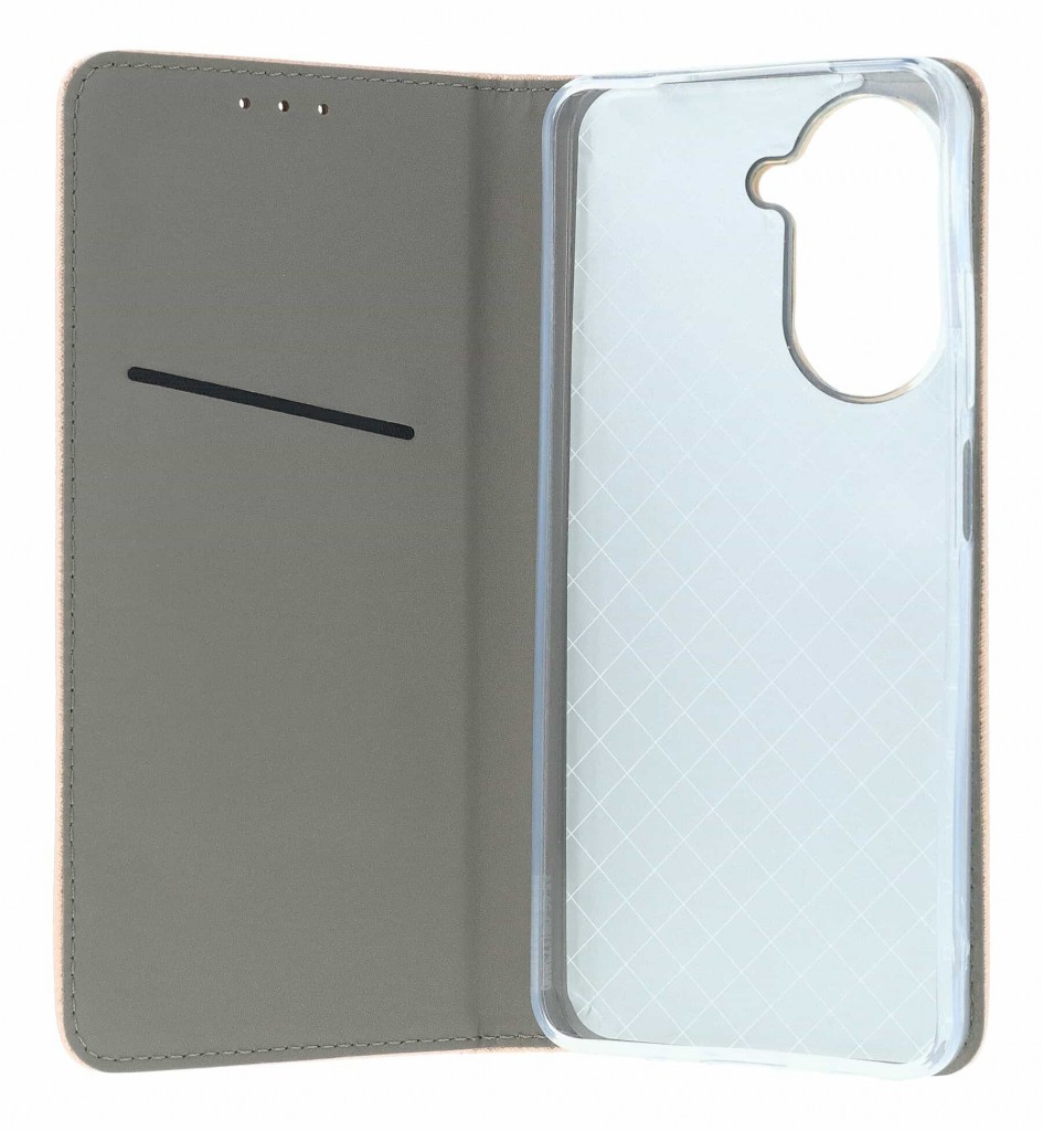 Povrch pouzdra je potažený kvalitním textilním materiálem s jemným saténovým leskem, který při pohybu chytá světlo a vytváří iluzi tekutého zlata. Magnetické zapínání je skryté pod plochou, takže vzhled zůstává hladký a elegantní.