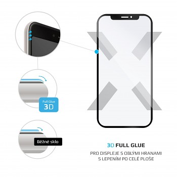 - Upozornění: 3D skla kryjí kompletně celou přední část displeje včetně zaoblených rohů a může dojít k tomu, že telefon pak nebude stoprocentně kompatibilní s některými typy zadních krytů nebo pouzder