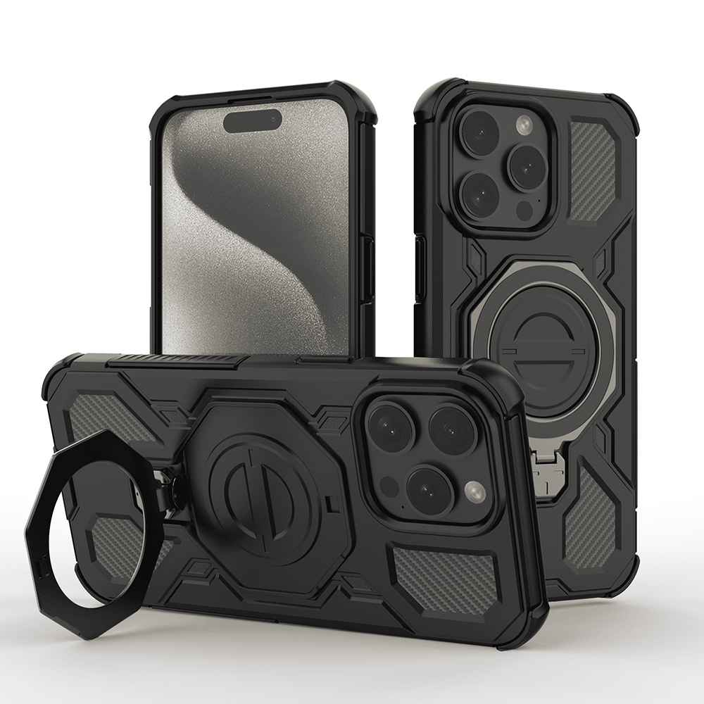 Kryt Techsuit Carbon Shield PRO se pyšní robustním a moderním designem, který okamžitě upoutá pozornost. Jeho černá barva je doplněna o texturované prvky imitující karbonová vlákna, které dodávají krytu dynamický a sportovní vzhled. Zesílené rohy zajišťují zvýšenou odolnost proti nárazům a pádům, zatímco precizní výřezy pro fotoaparáty, konektory a reproduktory zaručují plnou funkčnost telefonu. Integrovaný kruhový prvek na zadní straně slouží jako praktický stojánek nebo držák na prst, což zvyšuje komfort při používání a sledování obsahu. Tlačítka jsou chráněna, ale zároveň si zachovávají jistý a příjemný stisk.