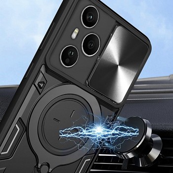 Na zadní straně obalu naleznete integrovaný kroužek, který slouží jako praktický stojánek pro pohodlné sledování obsahu nebo jako bezpečný úchyt pro pevnější držení telefonu. Tento kroužek je navíc magnetický, což umožňuje snadné připevnění telefonu k magnetickým držákům například v automobilu. Obal je navržen s precizními výřezy pro všechny konektory, mikrofony, reproduktory a fotoaparáty, což zajišťuje plnou funkčnost vašeho zařízení bez jakéhokoli omezení. Zesílené rohy a celková konstrukce obalu poskytují zvýšenou odolnost proti pádům a nárazům.
