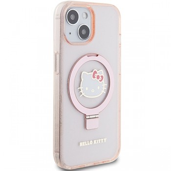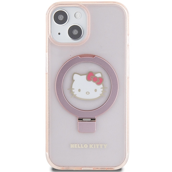 Originální pouzdro HELLO KITTY hardcase Ring Stand Glitter Electrop Logo MagSafe HKHMP15SHRSGEP pro Iphone 13/14/15 pink