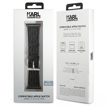 Originální řemínek KARL LAGERLELD Saffiano Monogram KLAWMSAKLHPK pro Apple Watch 38-40-41mm černýLuxus pro zápěstí