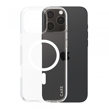 Kryt Urban Combat se pyšní křišťálově čistým průhledným designem, který nechá vyniknout originální krásu vašeho iPhonu 16 Pro Max. Dominantním prvkem je integrovaný bílý MagSafe kroužek, který zajišťuje bezproblémovou kompatibilitu s veškerým MagSafe příslušenstvím a zároveň dodává krytu moderní a čistý vzhled. Na boku krytu je decentně umístěno logo "CARE", podtrhující závazek značky k udržitelnosti a kvalitě.
