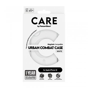 PanzerGlass® CARE Flagship Urban Combat bílý MagSafe iPhone 16 průhlednýPředstavujeme PanzerGlass® CARE Flagship Urban Combat, prémiový ochranný kryt navržený pro iPhone 16, který dokonale spojuje nekompromisní ochranu s elegantním designem. Tento průhledný kryt s podporou MagSafe je ideální volbou pro ty, kteří chtějí zachovat originální vzhled svého telefonu a zároveň mu dopřát špičkovou ochranu.