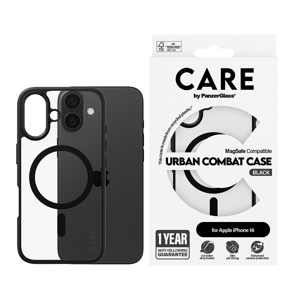 PanzerGlass® CARE Flagship Urban Combat černý MagSafe iPhone 16 černýZnačka PanzerGlass®, pocházející z Dánska, se od svého založení v roce 2013 stala celosvětovým synonymem pro špičkovou ochranu mobilních zařízení. Ačkoliv je proslulá především svými extrémně odolnými ochrannými skly, její filozofie maximální odolnosti a prémiové kvality se plně promítá i do portfolia krytů. Tato společnost klade důraz na neustálé inovace, udržitelnost a poskytuje ochranu, na kterou se můžete spolehnout i v těch nejnáročnějších podmínkách.