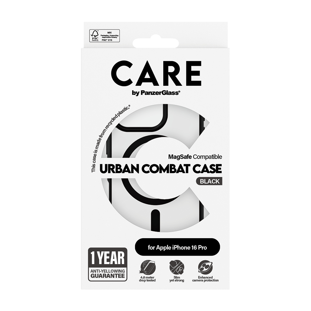 PanzerGlass® CARE Flagship Urban Combat černý MagSafe iPhone 16 Pro Max černýPředstavujeme PanzerGlass® CARE Flagship Urban Combat – dokonalou kombinaci extrémní odolnosti a elegantního designu pro váš iPhone 16 Pro Max. Tento kryt, navržený s precizností a důrazem na detail, poskytuje vašemu zařízení špičkovou ochranu, aniž by kompromitoval jeho styl.