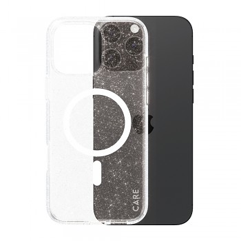 Kryt CARE Flagship Urban Combat Star Lit White MagSafe je vyroben z pokročilých materiálů – flexibilního TPU na rámečcích a tvrdého polykarbonátu na zadní straně, což zajišťuje optimální kombinaci pružnosti a pevnosti. Jeho průhledné provedení s jemným, třpytivým efektem "Star Lit" nechá vyniknout originální design vašeho telefonu, zatímco výrazný bílý MagSafe kroužek a vertikální proužek pod ním dodávají krytu moderní a funkční vzhled. Samozřejmostí je plná kompatibilita s MagSafe příslušenstvím pro snadné a bezpečné bezdrátové nabíjení a připojení. Navíc je tento kryt vybaven speciální antibakteriální úpravou, která prokazatelně eliminuje až 99,9 % běžných povrchových bakterií.