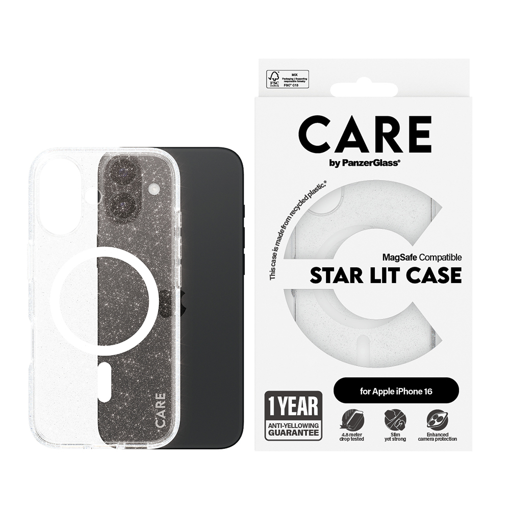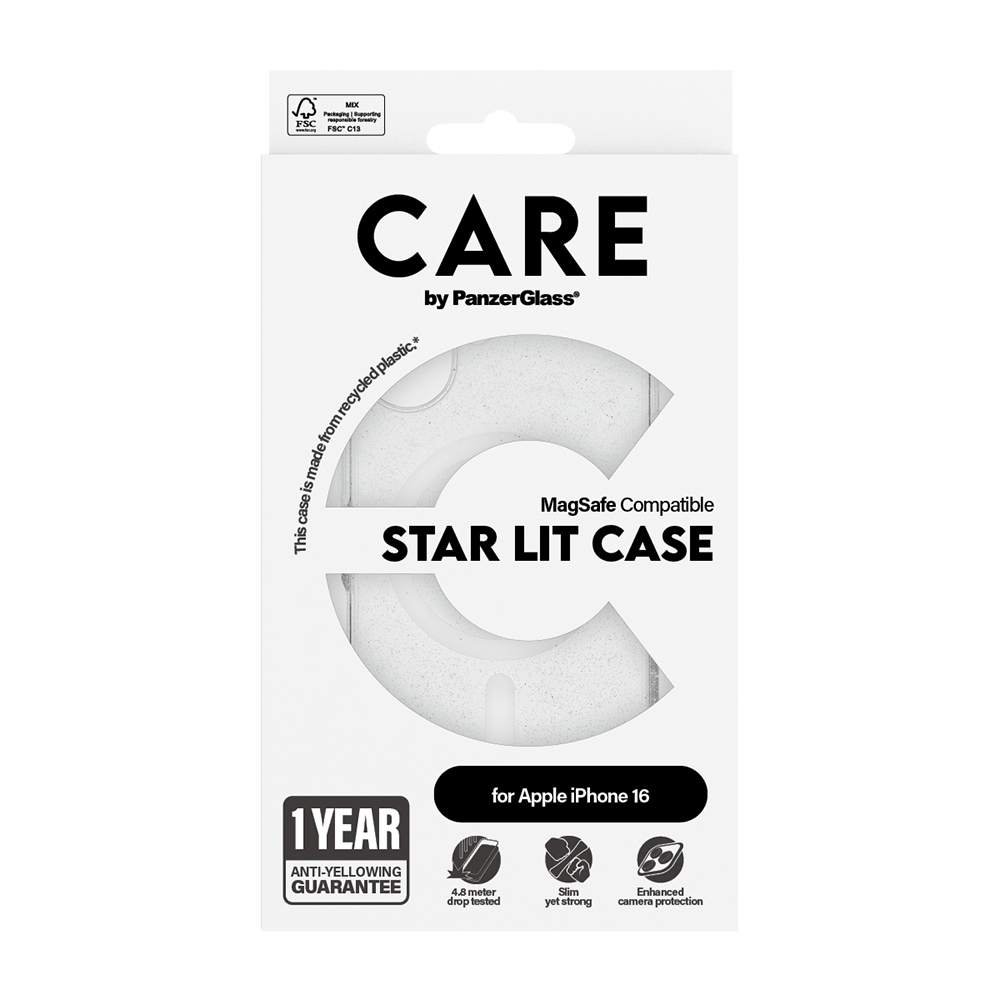 PanzerGlass® CARE Flagship Urban Combat Star Lit Bílý MagSafe iPhone 16 průhlednýPředstavujeme PanzerGlass® CARE Flagship Urban Combat Star Lit White MagSafe – prémiový průhledný kryt, který dokonale kombinuje špičkovou ochranu a elegantní design pro váš iPhone 16. Tento kryt je ztělesněním dánské preciznosti a inovace, na kterou se můžete spolehnout v každodenním shonu i v náročných podmínkách.