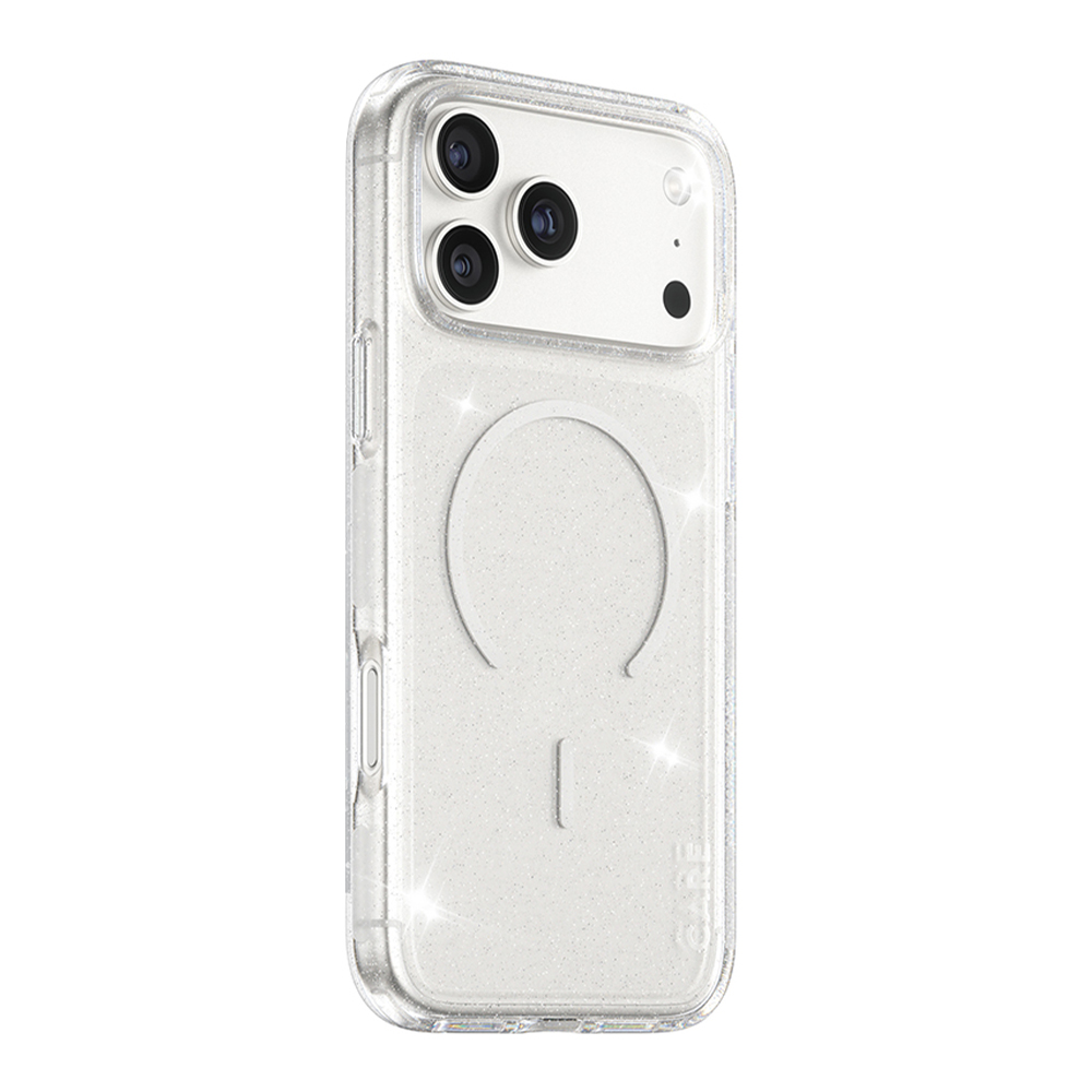 Kryt se pyšní průhledným provedením s jemným, třpytivým efektem "Star Lit", který dodává vašemu telefonu oslnivý vzhled, aniž by zakrýval jeho ikonický design. Integrovaný MagSafe kroužek zajišťuje bezproblémovou kompatibilitu s MagSafe příslušenstvím a rychlé bezdrátové nabíjení. Kryt je vyroben z kombinace flexibilního TPU na rámečcích a tvrdého polykarbonátu na zadní straně, což zaručuje vynikající absorpci nárazů a ochranu při pádech. Díky preciznímu zpracování a tenkému profilu padne dokonale do ruky a neomezuje přístup k žádným portům ani tlačítkům. Na boku krytu je decentně vyraženo logo "CARE", které podtrhuje jeho exkluzivitu.