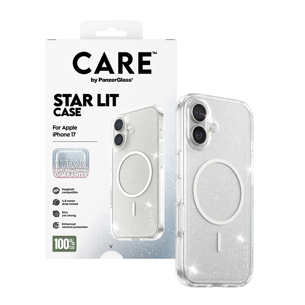 PanzerGlass® CARE Flagship Urban Explorer Star Lit White MagSafe iPhone 17 průhlednýPředstavujeme PanzerGlass® CARE Flagship Urban Explorer Star Lit White MagSafe – prémiový průhledný kryt, který dokonale kombinuje špičkovou ochranu s elegantním designem pro váš iPhone 17. Tento kryt je ztělesněním dánské preciznosti a inovace, navržený tak, aby váš telefon nejen chránil, ale i podtrhl jeho originální krásu.