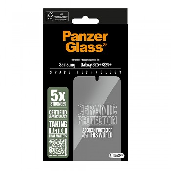 PanzerGlass Ultra-Wide Fit keramický chránič displeje s EasyAligner Samsung Galaxy S25 Plus S24 Plus čirýPrémiová dánská značka PanzerGlass® je jedním z celosvětově nejuznávanějších specialistů na ochranu displejů. Společnost, která pochází z Dánska, si vybudovala jméno na maximální odolnosti – ostatně název "Panzer" (tank) jasně odkazuje na nekompromisní ochranu. Jejich produkty jsou synonymem pro špičkovou kvalitu, extrémní odolnost proti poškrábání a nárazu, a to díky unikátním výrobním procesům temperace (tvrzení) skla a přísné kontrole kvality.