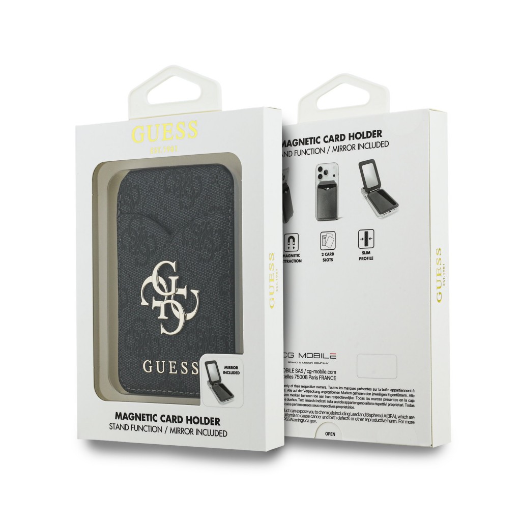Peněženka se Stojanem Guess PU 4G Mirror MagSafe Cardslot BlackTato magnetická peněženka od značky Guess představuje dokonalé spojení elegance a funkčnosti pro váš každodenní život. Není pouze módním doplňkem, ale také praktickým pomocníkem, který vám usnadní organizaci vašich nezbytností.