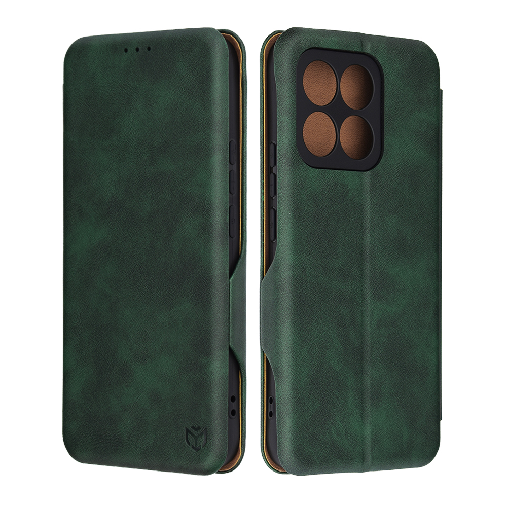 Pouzdro Techsuit Safe Wallet Plus se pyšní sofistikovaným designem v sytě zelené barvě s jemnou texturou, která imituje broušenou kůži a dodává mu luxusní vzhled. Vnitřní strana pouzdra je vyvedena v kontrastním světle hnědém odstínu, což podtrhuje jeho eleganci. Díky svému peněženkovému provedení nabízí nejen ochranu displeje, ale také praktické vnitřní přihrádky na platební karty nebo bankovky. Integrovaná funkce stojánku umožňuje pohodlné sledování videí či prohlížení obsahu v horizontální poloze. Pouzdro je vybaveno přesnými výřezy pro všechny konektory, mikrofony, reproduktory a fotoaparáty, což zajišťuje neomezenou funkčnost vašeho zařízení. Tlačítka si zachovávají jistý stisk a přístup k nabíjecímu portu je vždy bezproblémový. Diskrétní logo Techsuit je vkusně umístěno na přední straně pouzdra.