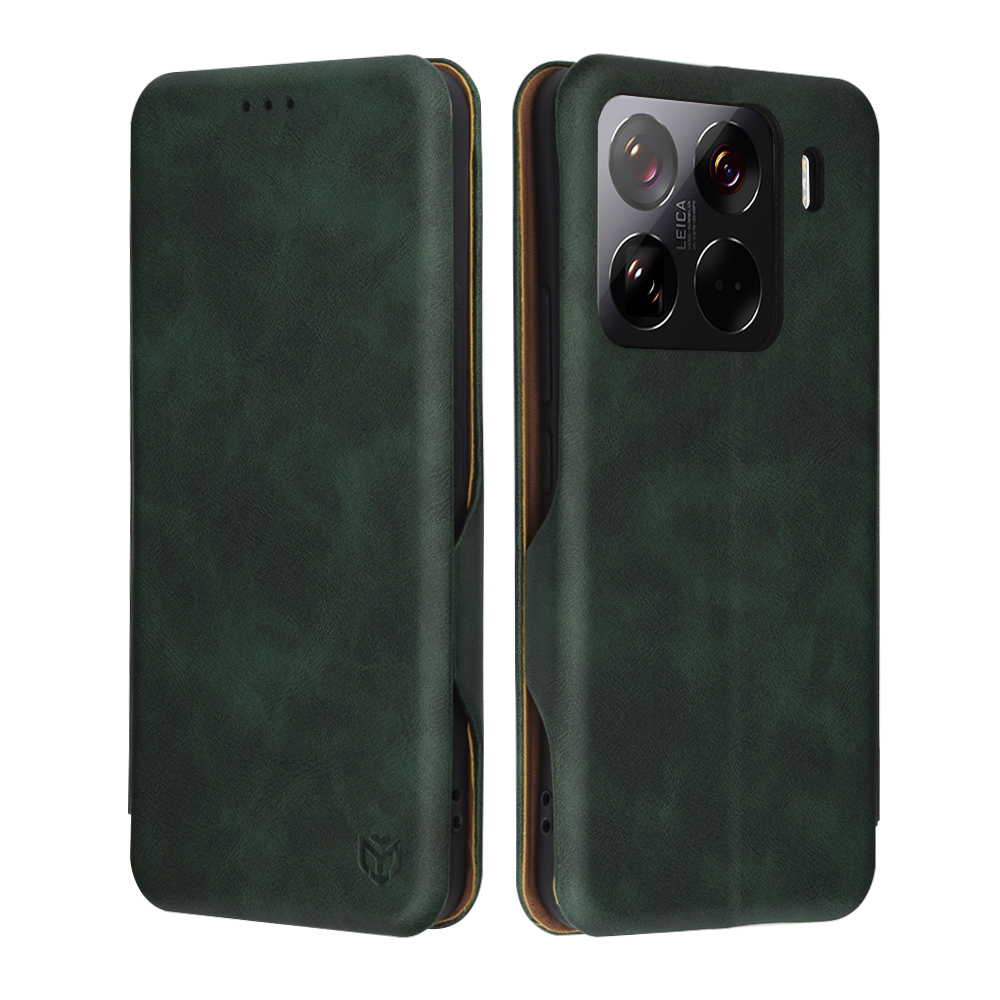 Pouzdro se pyšní sofistikovaným zeleným odstínem s jemnou texturou, která připomíná broušenou kůži a dodává mu luxusní vzhled. Kontrastní světle hnědé lemování po okrajích podtrhuje jeho elegantní design. Jedná se o typ peněženkového pouzdra, které poskytuje ochranu celému telefonu. Na přední straně jsou diskrétní výřezy pro sluchátko, zatímco zadní strana disponuje přesným výřezem pro kamerový modul Xiaomi 15 Pro, což zajišťuje plnou funkčnost fotoaparátu bez omezení. Pouzdro je navrženo tak, aby dokonale obepínalo telefon a chránilo jej ze všech stran.