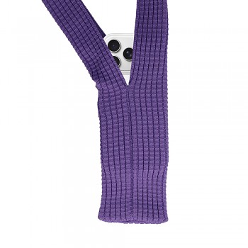 Kapesní popruh se pyšní jednoduchým a zároveň propracovaným designem ve výrazné fialové barvě. Je vyroben z jednoho kusu textilie pomocí pokročilé třívrstvé technologie tkaní, která mu dodává jemnou, na dotek příjemnou texturu a zároveň zajišťuje mimořádnou odolnost a pružnost. Popruh plynule přechází v kapsu, která díky své elasticitě bezpečně obepne váš mobilní telefon. Celkový vzhled je čistý a moderní, bez zbytečných švů a spon, což podtrhuje jeho minimalistický charakter.