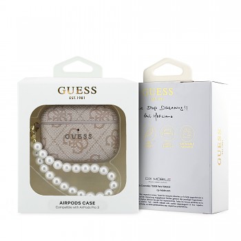 Pouzdro je vyrobeno z kombinace odolného PC a PU materiálu. Jeho povrch zdobí ikonický a nestárnoucí 4G vzor v hnědém provedení, který je synonymem pro značku Guess. Přední stranu pouzdra decentně doplňuje zlaté logo Guess, které dodává celkovému vzhledu punc exkluzivity. Konstrukce se skládá ze dvou samostatných částí, které přesně padnou na tělo i víčko nabíjecího pouzdra AirPods.