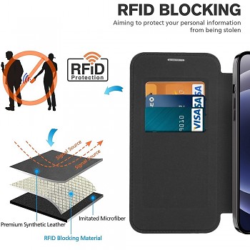 Mezi klíčové vlastnosti patří integrované dva sloty na karty na vnitřní straně přední klopy, které vám umožní mít důležité karty vždy po ruce. Pro maximální bezpečí vašich osobních údajů je pouzdro vybaveno RFID blokovací technologií, která chrání vaše karty před neoprávněným skenováním. Pouzdro je plně kompatibilní s bezdrátovým nabíjením a technologií MagSafe, což je indikováno kruhovým prvkem na zadní straně. Zesílené rohy poskytují zvýšenou ochranu proti pádům a nárazům. Oblast kolem fotoaparátu je chráněna anti-scratch fólií na čočky a galvanicky pokoveným rámečkem, což zajišťuje bezpečí pro vaše objektivy.
