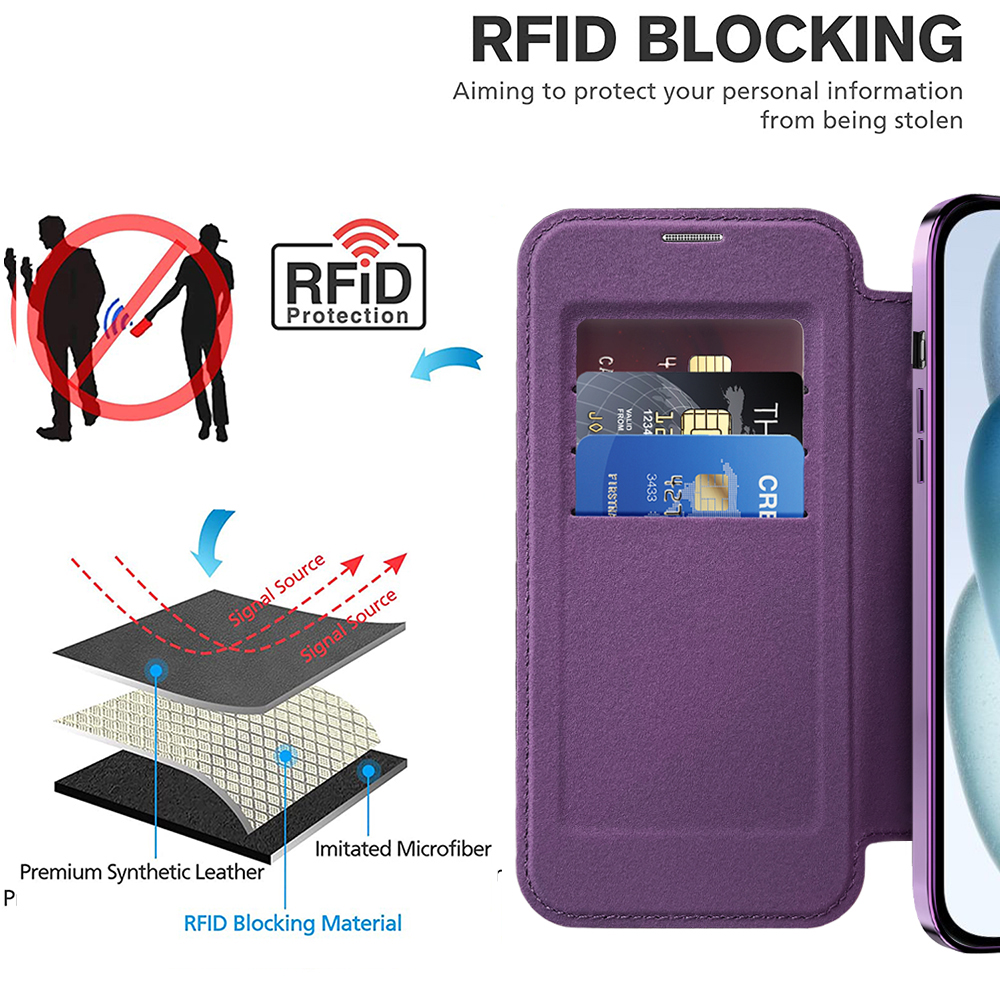 Pouzdro je vybaveno funkcí peněženky, která nabízí tři praktické přihrádky na karty, ideální pro uložení platebních karet nebo dokladů. Navíc disponuje RFID blokováním, které chrání vaše osobní údaje před neoprávněným skenováním a krádeží. Díky promyšlené konstrukci lze pouzdro snadno složit do praktického stojánku pro pohodlné sledování obsahu.