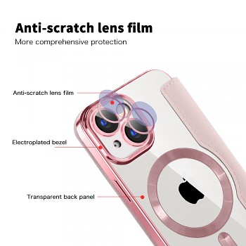 Zadní strana pouzdra je osazena magnetickým kroužkem, který zajišťuje plnou kompatibilitu s technologií MagSafe, což umožňuje snadné a efektivní bezdrátové nabíjení a použití MagSafe příslušenství. Pro ochranu fotoaparátu je pouzdro vybaveno fólií proti poškrábání objektivu a galvanicky pokoveným rámečkem kolem modulu fotoaparátu, což poskytuje komplexní ochranu.