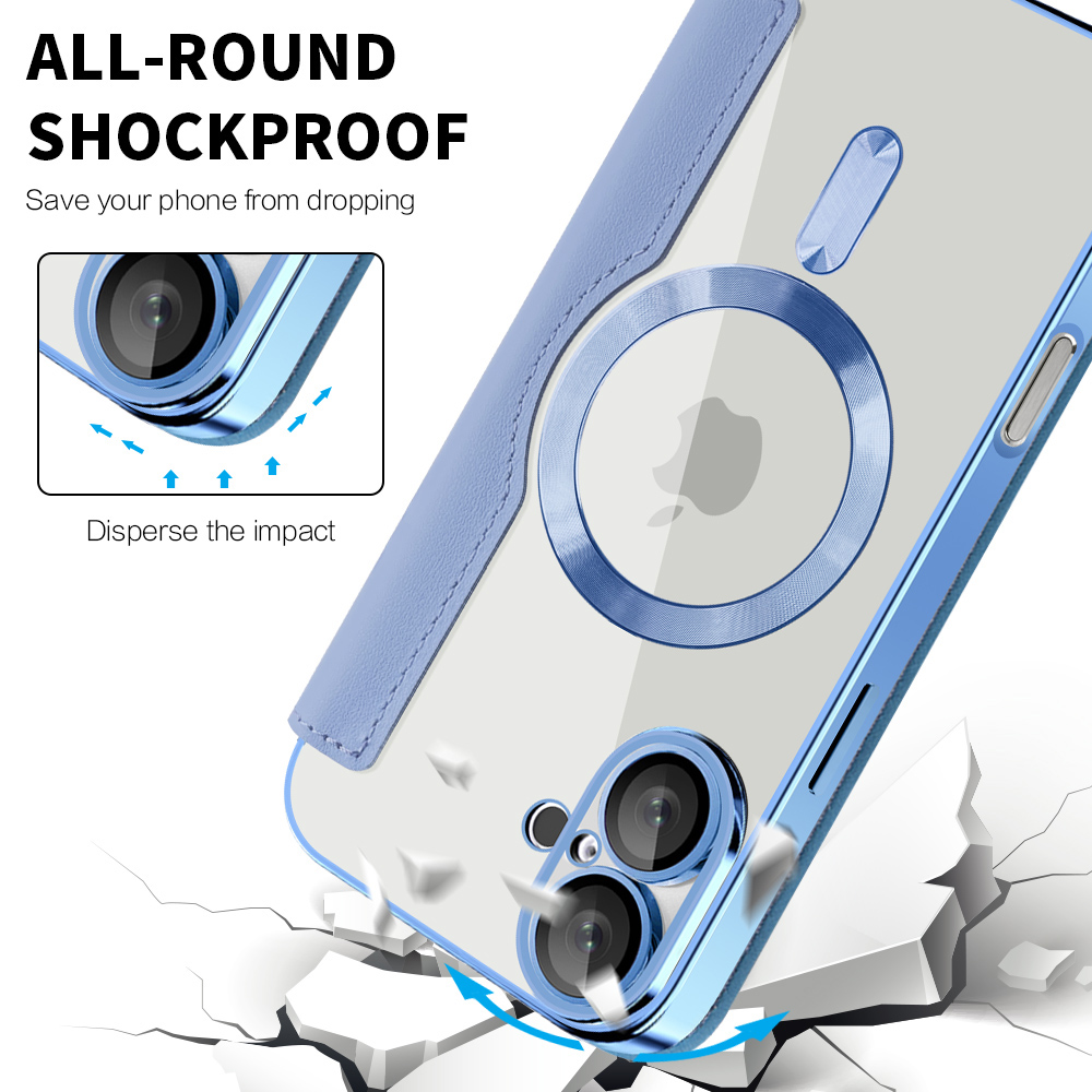 Zadní část pouzdra je tvořena transparentním panelem, který nechává vyniknout originální design vašeho iPhonu. Okolo fotoaparátů a po obvodu telefonu se táhne elektrolyticky pokovený rámeček v ladícím modrém odstínu, který nejenže dodává pouzdru sofistikovaný vzhled, ale zároveň poskytuje zvýšenou ochranu objektivů díky integrované anti-scratch fólii.
