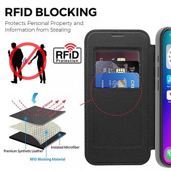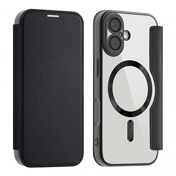Pouzdro Techsuit SmartMag Book Case se pyšní elegantním knižním designem v klasické černé barvě, který dodá vašemu iPhonu 17 sofistikovaný vzhled. Vnější strana je vyrobena z prémiové syntetické kůže, která je příjemná na dotek a odolná proti opotřebení. Vnitřní část, do které se telefon vkládá, je průhledná, což umožňuje vyniknout originálnímu designu vašeho iPhone 17.
