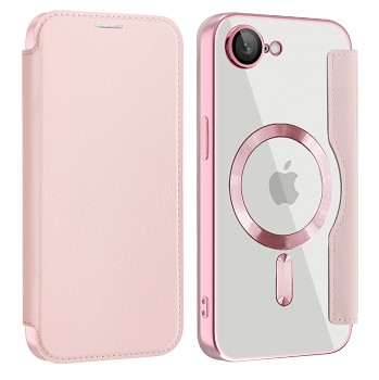 Pouzdro Techsuit SmartMag se pyšní sofistikovaným designem v jemném růžovém odstínu, který dodá vašemu iPhone 16e nádech elegance. Jedná se o pouzdro typu kniha, které poskytuje komplexní ochranu celého zařízení. Vnější strana je vyrobena z příjemného materiálu s jemnou texturou, zatímco vnitřní strana předního flipu nabízí praktické sloty pro platební karty nebo doklady, což z něj činí ideálního společníka pro každodenní nošení. Telefon je bezpečně usazen v průhledné vaničce s růžovými okraji, která nechává vyniknout originální design telefonu. Na zadní straně vaničky je integrován výrazný magnetický kruh, zajišťující plnou kompatibilitu s technologií MagSafe pro snadné a rychlé bezdrátové nabíjení a připojení příslušenství. Samozřejmostí jsou přesné výřezy pro fotoaparát, konektory a reproduktory, stejně jako krytky tlačítek pro jejich jistý stisk.