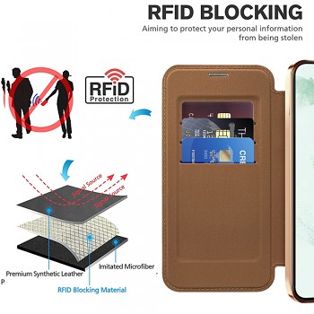 Pouzdro Techsuit SmartMag se pyšní luxusním hnědým provedením z prémiové syntetické kůže, která dodává vašemu telefonu elegantní a profesionální vzhled. Vnitřní strana flipového krytu je vybavena praktickými sloty pro platební karty, které jsou navíc chráněny speciální RFID blokující vrstvou. Ta efektivně brání neoprávněnému skenování a krádeži vašich osobních údajů.