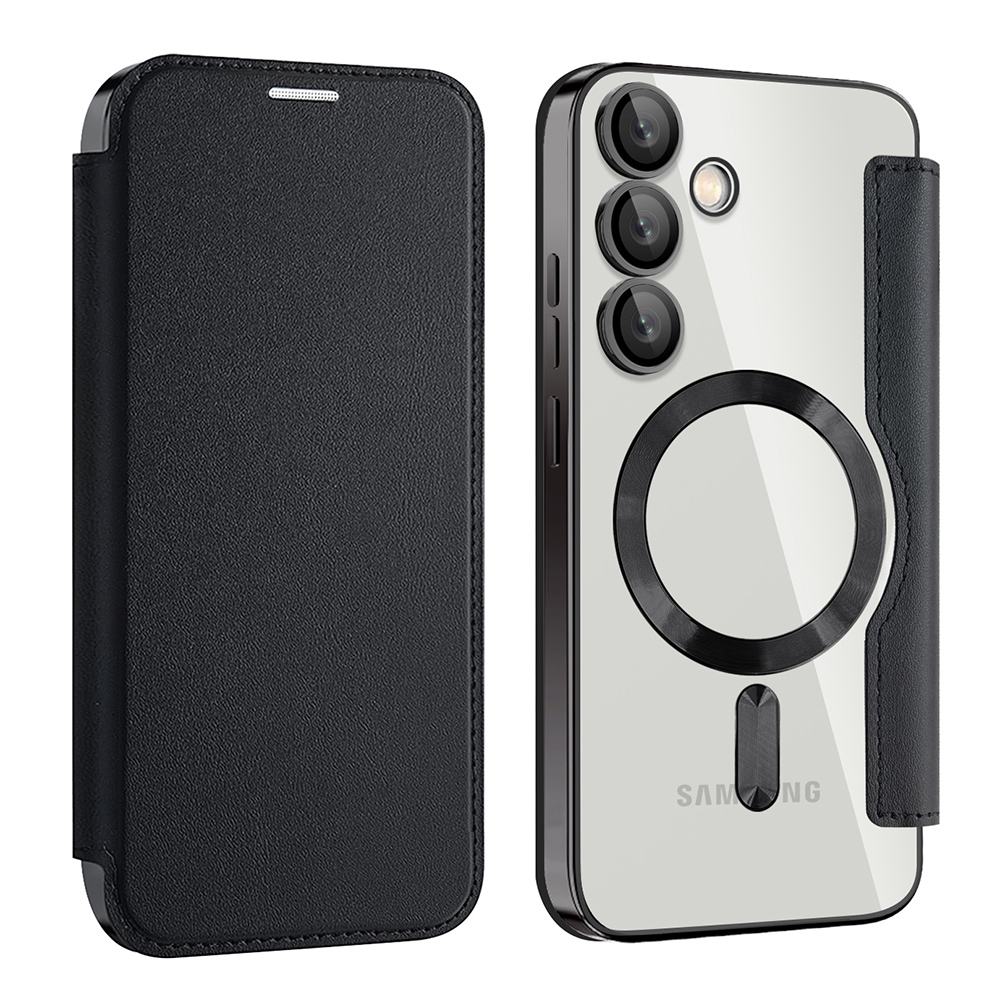 Toto pouzdro se pyšní minimalistickým a sofistikovaným designem v klasické černé barvě, která podtrhuje eleganci vašeho zařízení. Vnější strana je vyrobena z materiálu s jemnou texturou, který je příjemný na dotek a zároveň odolný proti každodennímu opotřebení. Vnitřní strana předního flipu nabízí praktické sloty pro platební karty nebo doklady, což z pouzdra dělá ideálního společníka pro každodenní nošení.
