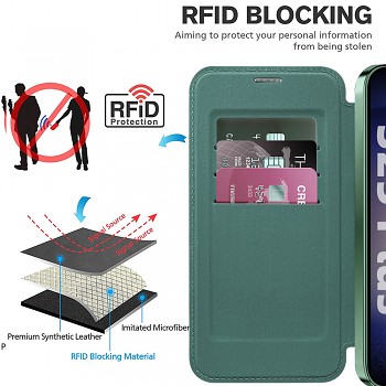 Pouzdro Techsuit SmartMag Book Case se pyšní sofistikovaným knížkovým designem v příjemném, tlumeném zeleném odstínu, který dodá vašemu telefonu elegantní a moderní vzhled. Vnější strana je vyrobena z kvalitního materiálu s jemnou texturou, která je příjemná na dotek a zároveň odolná proti každodennímu opotřebení. Vnitřní strana přední klapky nabízí dva praktické sloty na karty, ideální pro uložení platebních karet nebo dokladů, což z pouzdra činí multifunkčního společníka.