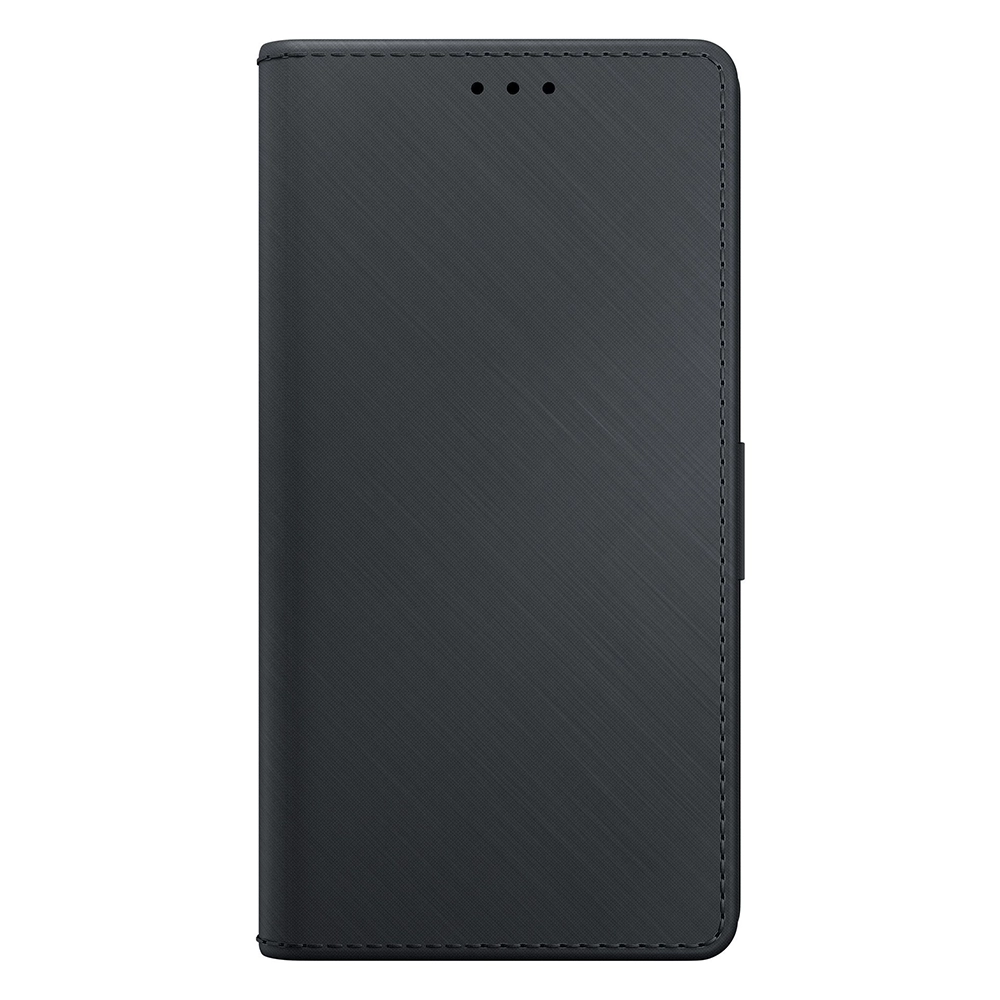 Pouzdro se pyšní nadčasovým černým provedením s jemnou texturou, která připomíná broušený kov nebo kartáčovanou kůži, což mu dodává sofistikovaný a moderní vzhled. Jeho design typu "peněženka" se otevírá jako kniha a poskytuje ochranu celého telefonu – displeje i zadní strany. Uvnitř naleznete praktické přihrádky na platební karty a bankovky, což eliminuje potřebu nosit s sebou samostatnou peněženku. Telefon je bezpečně usazen v integrovaném rámečku, který zajišťuje snadný přístup ke všem portům a tlačítkům, zatímco magnetické zavírání drží pouzdro pevně uzavřené.