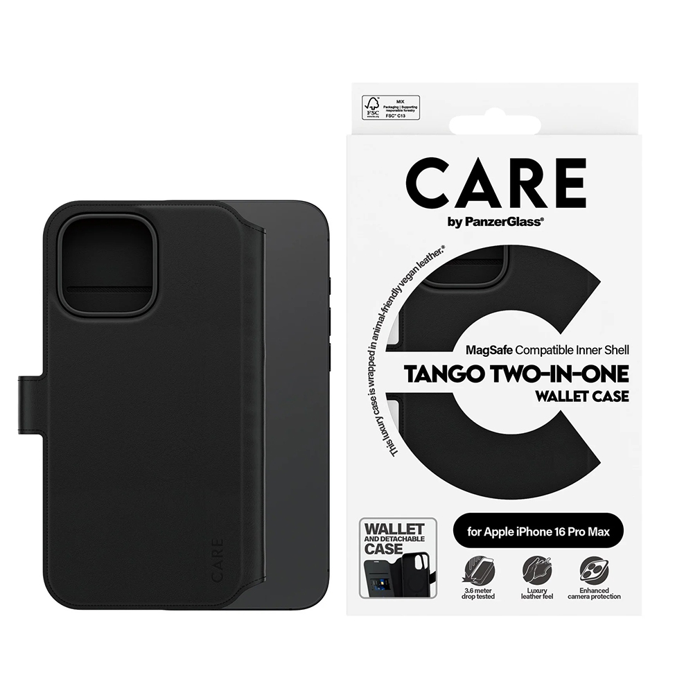 Pouzdro PanzerGlass CARE MagSafe Tango Two-in-One Wallet iPhone 16 Pro Max černéPředstavujeme PanzerGlass® CARE MagSafe Tango Two-in-One Wallet, inovativní pouzdro, které dokonale kombinuje špičkovou ochranu a praktickou eleganci. Tento produkt od renomované dánské značky PanzerGlass®, známé svou filozofií maximální odolnosti a prémiové kvality, je navržen tak, aby splnil i ty nejnáročnější požadavky na ochranu vašeho mobilního zařízení.