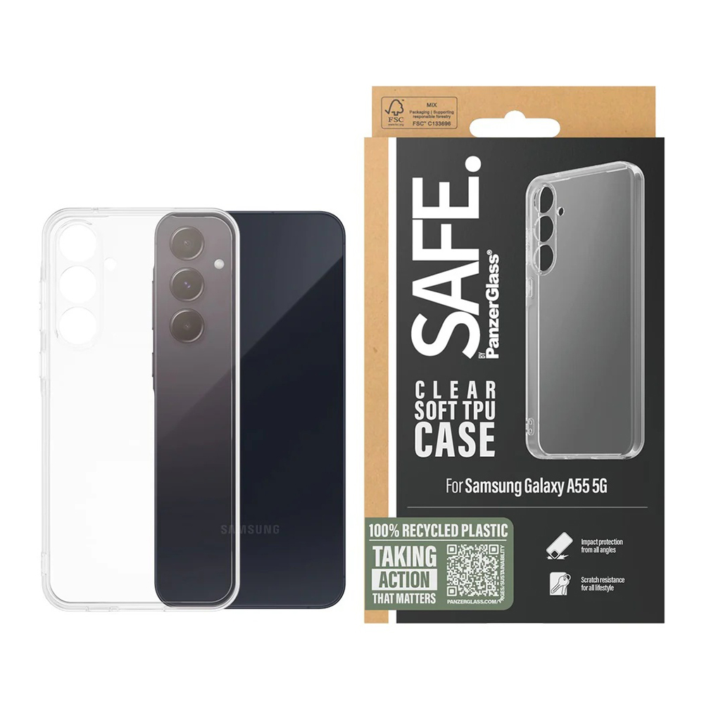 Pouzdro PanzerGlass SAFE TPU pro Samsung Galaxy A55 5G průhlednéChraňte svůj Samsung Galaxy A55 5G s elegancí a spolehlivostí díky průhlednému pouzdru PanzerGlass SAFE TPU. Toto pouzdro je navrženo tak, aby dokonale obepínalo křivky vašeho telefonu a poskytovalo mu optimální ochranu před každodenními nástrahami, aniž by zakrývalo jeho originální design.