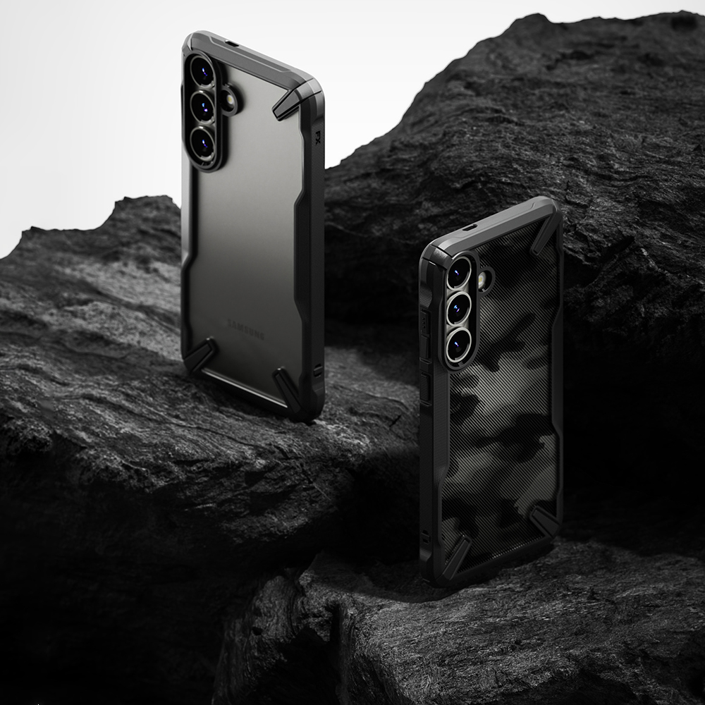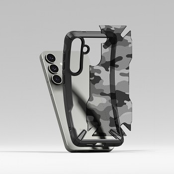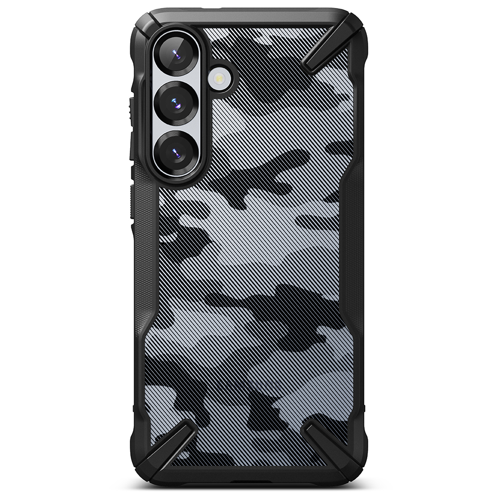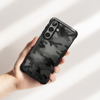 Pouzdro Ringke Fusion X Design v provedení Camo Black se vyznačuje hybridní konstrukcí, která spojuje to nejlepší z obou světů. Zadní strana je vyrobena z pevného polykarbonátu, který je odolný proti poškrábání a žloutnutí, a je zdobena moderním maskáčovým vzorem v odstínech černé a šedé, doplněným o jemné diagonální linky, které dodávají pouzdru dynamický vzhled. Tento vzor je nejen stylový, ale také pomáhá skrýt drobné otisky prstů a nečistoty. Rámeček pouzdra je zhotoven z flexibilního a nárazy pohlcujícího TPU materiálu, který efektivně chrání hrany a rohy telefonu před pády a nárazy. Zesílené rohy s výraznými prvky ve tvaru "X" poskytují zvýšenou ochranu proti pádům a zároveň podtrhují sportovní a odolný charakter pouzdra. Přesné výřezy zajišťují snadný přístup ke všem portům a tlačítkům, zatímco zvýšené okraje chrání displej a modul fotoaparátu před přímým kontaktem s povrchem.