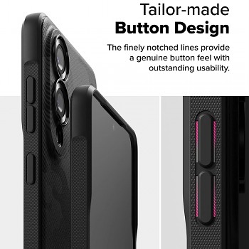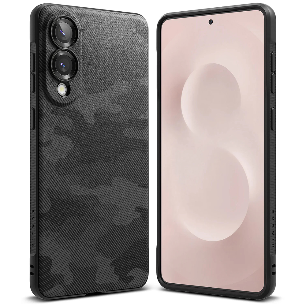 Pouzdro Ringke Onyx Design se pyšní sofistikovaným vzhledem s maskáčovým vzorem v odstínech černé a tmavě šedé, který dodává vašemu zařízení osobitý a moderní charakter. Zadní strana je opatřena jemnou, ale výraznou diagonální texturou, která nejenže skvěle vypadá, ale také výrazně zlepšuje úchop a minimalizuje riziko vyklouznutí telefonu z ruky. Přesné výřezy zajišťují snadný přístup ke všem portům a tlačítkům, zatímco zvýšené okraje kolem displeje a fotoaparátu poskytují extra ochranu proti poškrábání a nárazům. Pouzdro je vyrobeno z flexibilního a nárazy pohlcujícího TPU materiálu, který efektivně tlumí pády a chrání telefon před poškozením. Díky svému tenkému profilu pouzdro nepřidává telefonu zbytečný objem, a zachovává tak jeho elegantní linie.